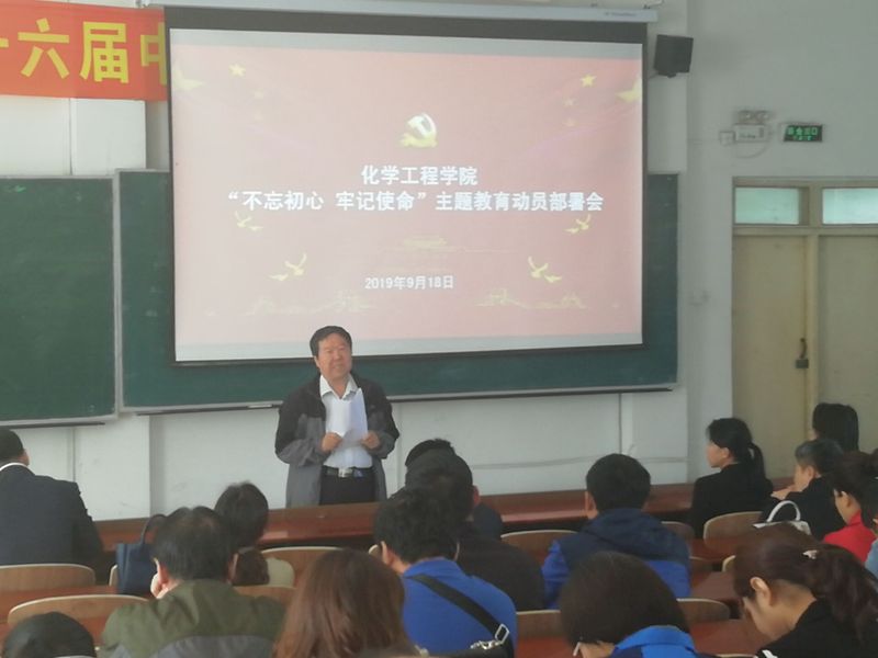 新闻网讯(通讯员 肖芳)9月18日,化学工程学院“不忘初心、牢记使命”主题教育动员部署会在综合楼一楼教室举行。学校主题教育第1工作指导组李昆、姜丹出席会议并作指导讲话。学院党委书记刘喜明作动员讲话。院长吴广峰主持会议。学院全体党员参加会议。