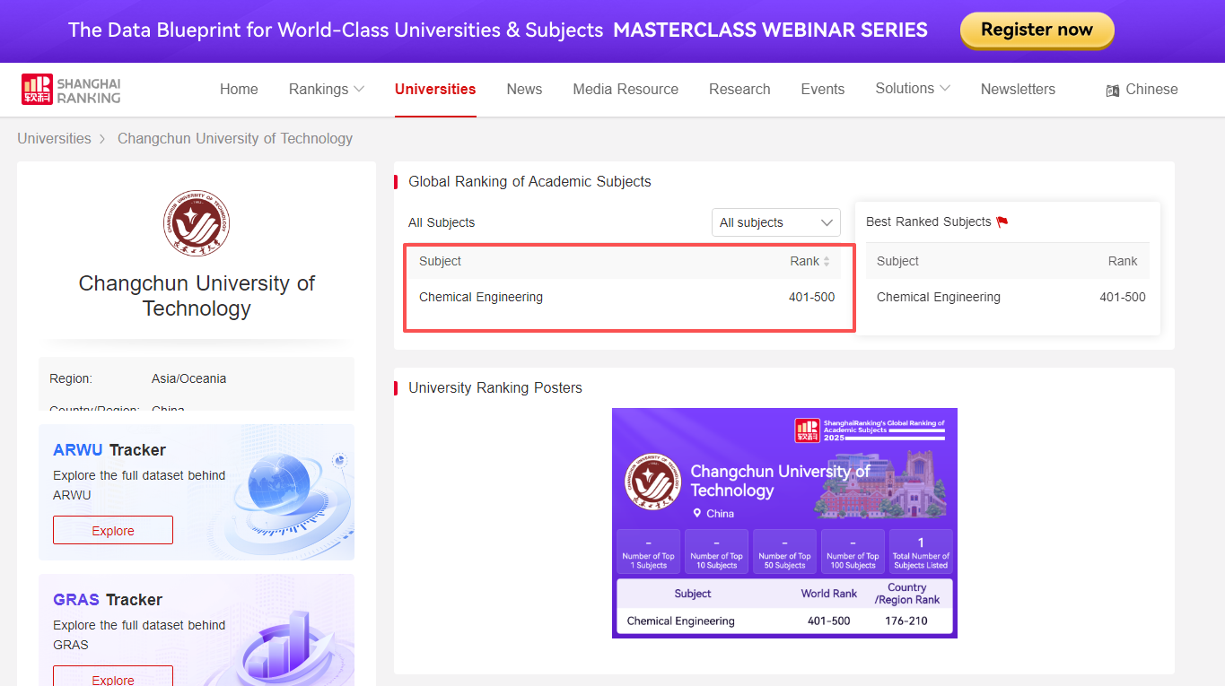 (通讯员:王璐)近日,软科世界一流学科排名正式发布,我院化学工程学科首次跻身该排名前500名,这一突破性成果标志着学院学科建设迈上新台阶,彰显了全体教师凝心聚力的奋斗成效。